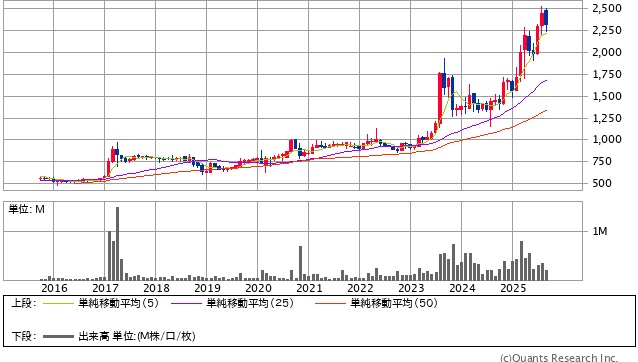 株価が急速に伸びていますね〜。私が保有していた数年間はそれはそれはおとなし〜株価の推移でした〜💦