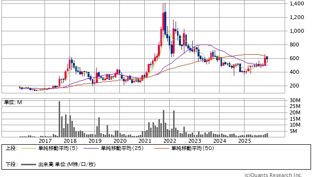 | 2025年12月30日株価 | 599円 |