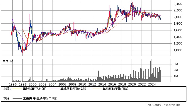 2000年まではジェットコースターの様な動きでしたがその後20年はのんびりした株価の動きですね〜。富士急ハイランドの『ド・ドドンパ』が『メリーゴーランド』の動きに変わった様なものでしょうか。この動きなら気分悪くならずのんびり楽しめそうです。