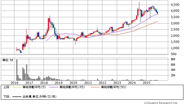 | 2025年10月26日株価 | 3,825円 |