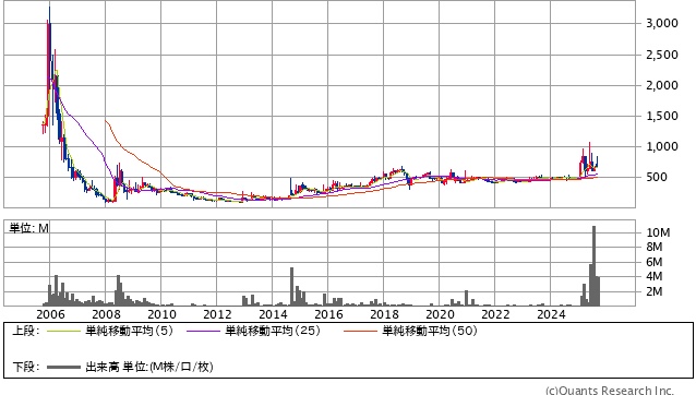 まずはフォーシーズHDの20年チャートを見ていきましょう。はい、どーん!