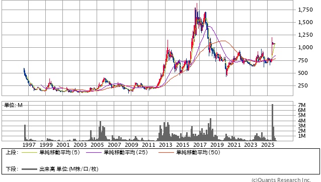 それではフロイント産業の30年チャートをのぞいてみましょう。はい、どーぞ!