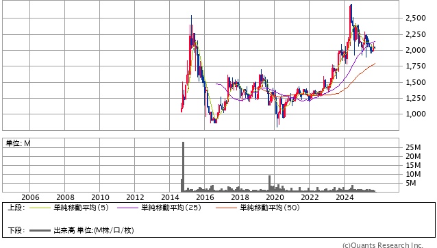 まずはホットランドの株式の歴史を10年チャートで見ていきましょう。