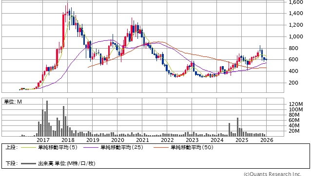 | 2026年1月11日株価 | 605円 |