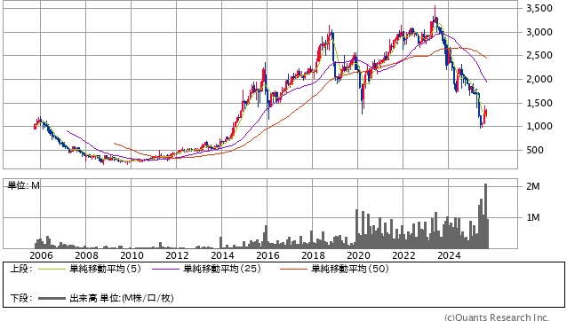 ここ最近はダラーと下がっておりますね〜。この銘柄が欲しい方には心惹かれる下げチャートなのではないでしょうか。