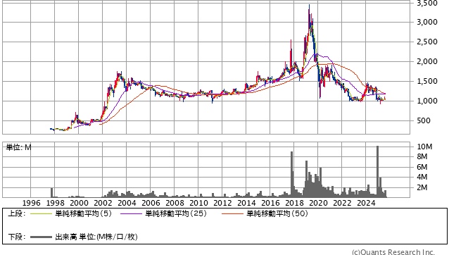 まずは幸楽苑ホールディングスの30年チャートを見ていきましょう。株価が3,500円まで上昇しているところが大変気になりますね。何故上がったのでしょうか?調べてみると原因の1つに前年の赤字から2019年3月期には大幅回復を見込むという期待があったらしいです。我々優待族は普通に株価が安いと判断した時に購入したいですね〜。こういう嵐の中での株の購入は大変リスクがあると思います〜。