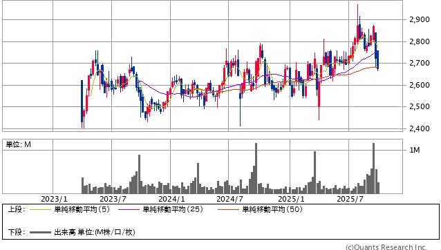 という事で、日本管財のチャートは2023年4月より日本管財ホールディングスとして再スタートしております。それから今まで、およそ2年のチャートを確認していきましょう