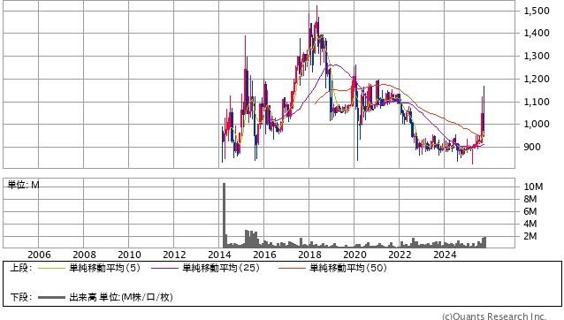 | 2025年10月24日株価 | 974円 |
